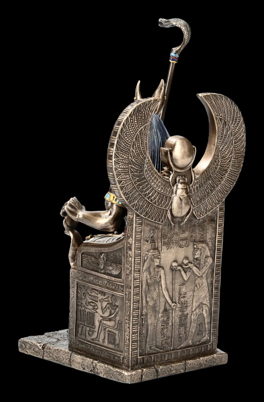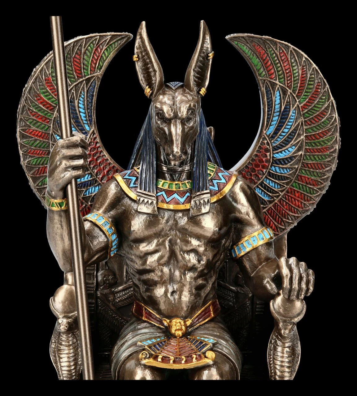 Der schakalköpfige Gott Anubis sitzt auf seinem Thron und blickt über sein Reich. Er ist der Gott der Toten und überwacht als Totenrichter die Seelenwägung. Die Figur von Veronese wurde mit viel Liebe zum Detail ausgearbeitet und hebt sich so aus jeder Sammlung hervor.