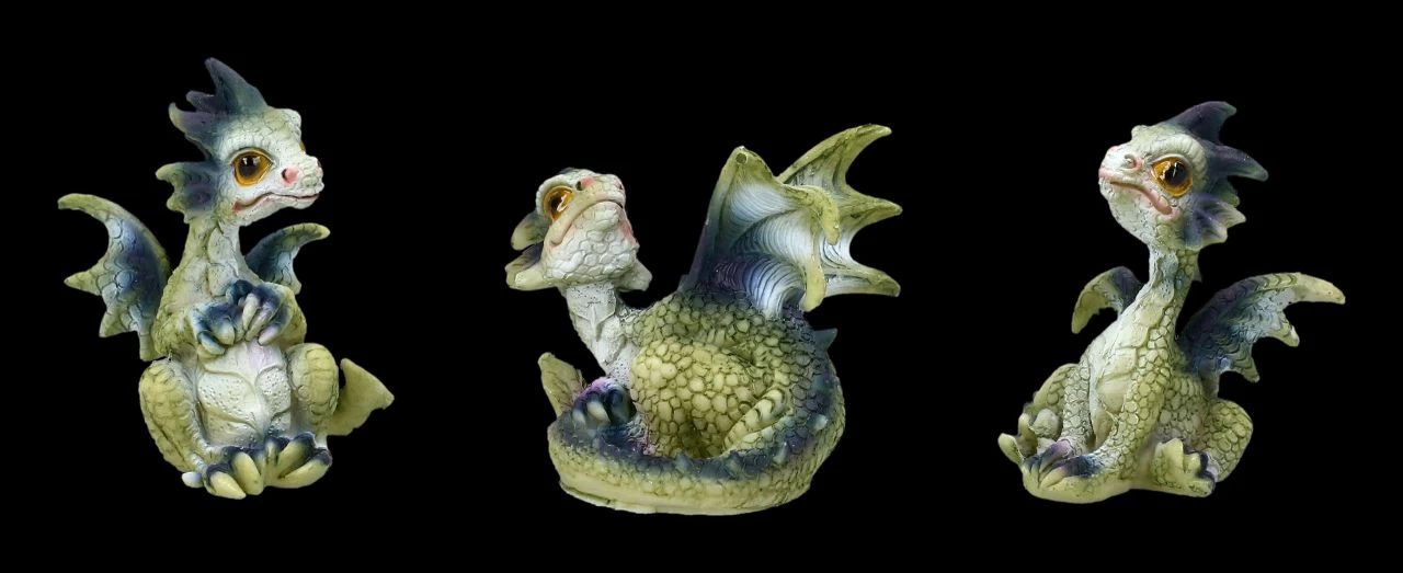 Na, was haben diese drei lustigen Gesellen wohl vor? Die witzigen Drachen Figuren im 3er Set heißen vermutlich nicht umsonst Triple Trouble. Die drei sind sehr detailreich aus Kunststein (Polyresin) gefertigt und liebevoll handbemalt. Mit ihrer Höhe von 5 cm – 6 cm, der Breite von 4,5 cm – 6 cm und der Tiefe von 4 cm – 5,5 cm sind die drei eine lustige Deko und ein originelles Geschenk für alle Drachenfreunde.