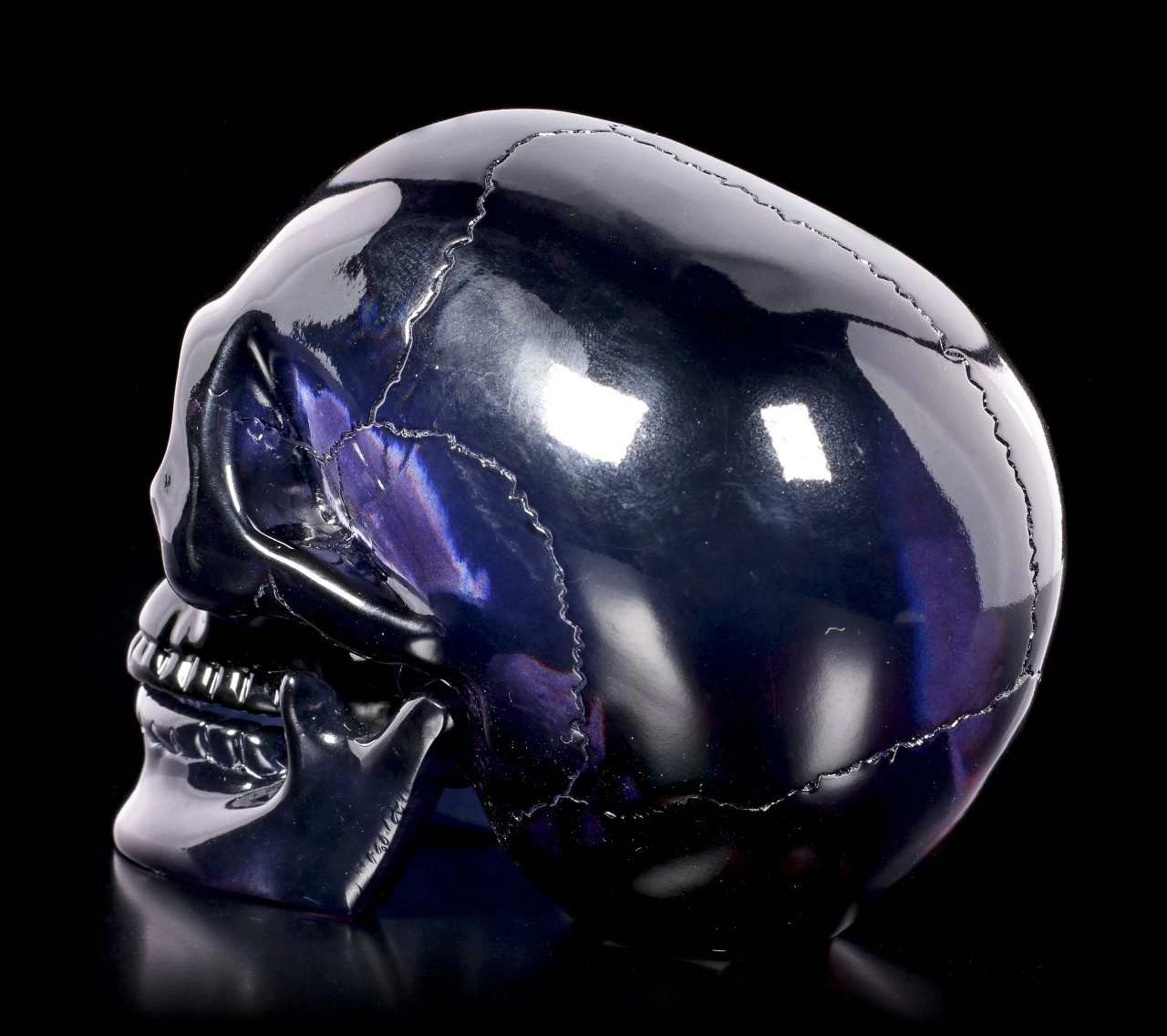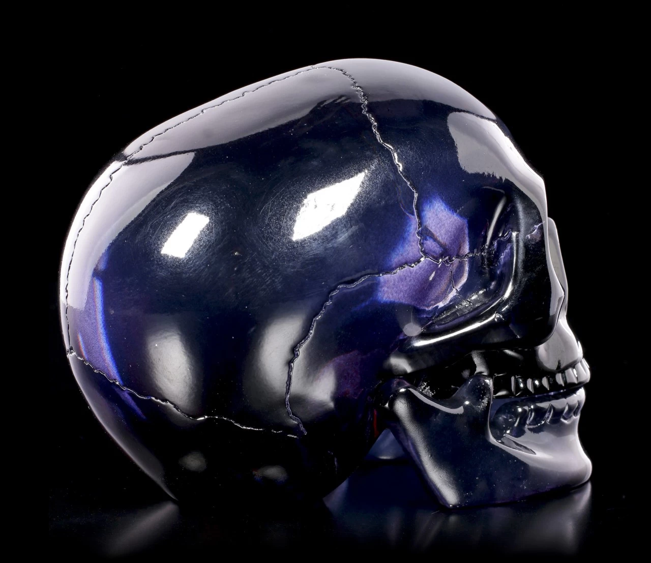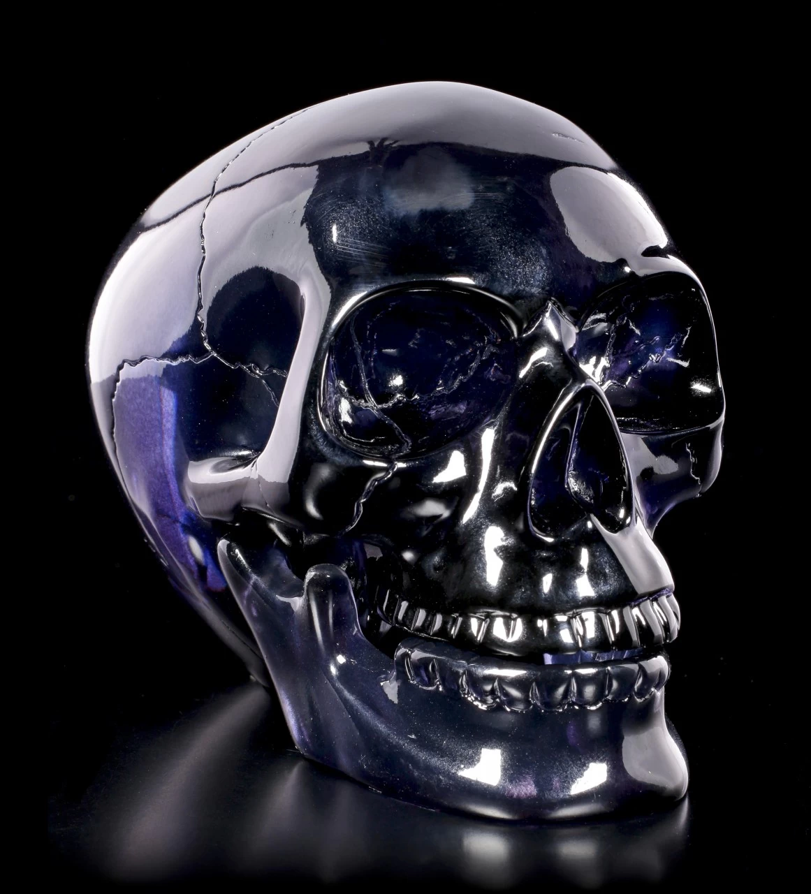 Der mystisch wirkende Totenschädel ist aus klarem blauen Resin. Durch den beweglichen Unterkiefer kann die Mimik des Skulls jederzeit geändert werden oder man kann ihm zum Beispiel auch einen magischen Spruch zwischen die Zähne klemmen.