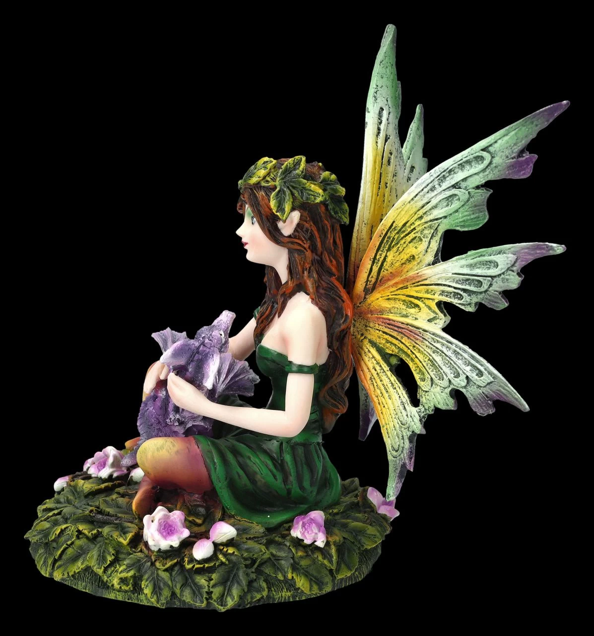 Die ersten Frühlingsblüten sind auf dem kleinen Wiesenstück bereits zu sehen, auf dem sich die niedliche Frühlings-Fee Fiona niedergelassen hat. Gemeinsam mit ihrem Haustier, dem lilafarbenen kleinen Drachen, genießt sie die ersten wärmenden Sonnenstrahlen. Die niedliche, 15 cm hohe, 11,5 cm breite und 13 cm tiefe Elfe wurde detailreich aus liebevoll handbemaltem Kunststein (Polyresin) gefertigt. Die Frühlingsfee Fiona mit den schönen großen Flügeln freut sich auf einen Platz – am besten gleich zwischen Ihren Pflanzen. Sie ist aber auch als Geschenk für Ihre Elfen-Freunde ein wunderbarer Frühlingsgruß.