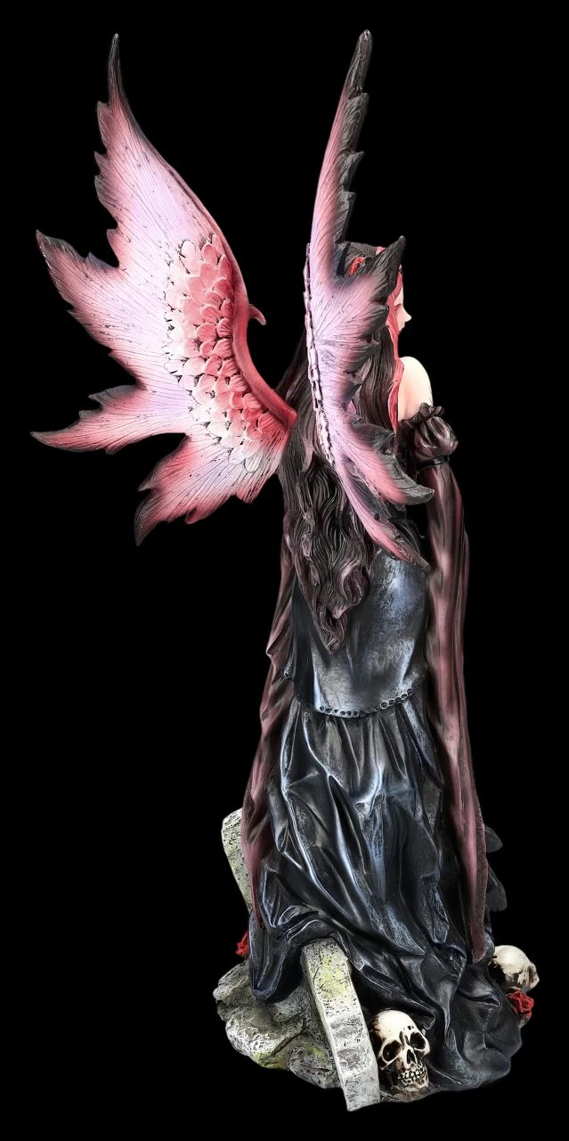 Finsterer Charme umhüllt diese Gothic Elfenfigur mit Totenköpfen