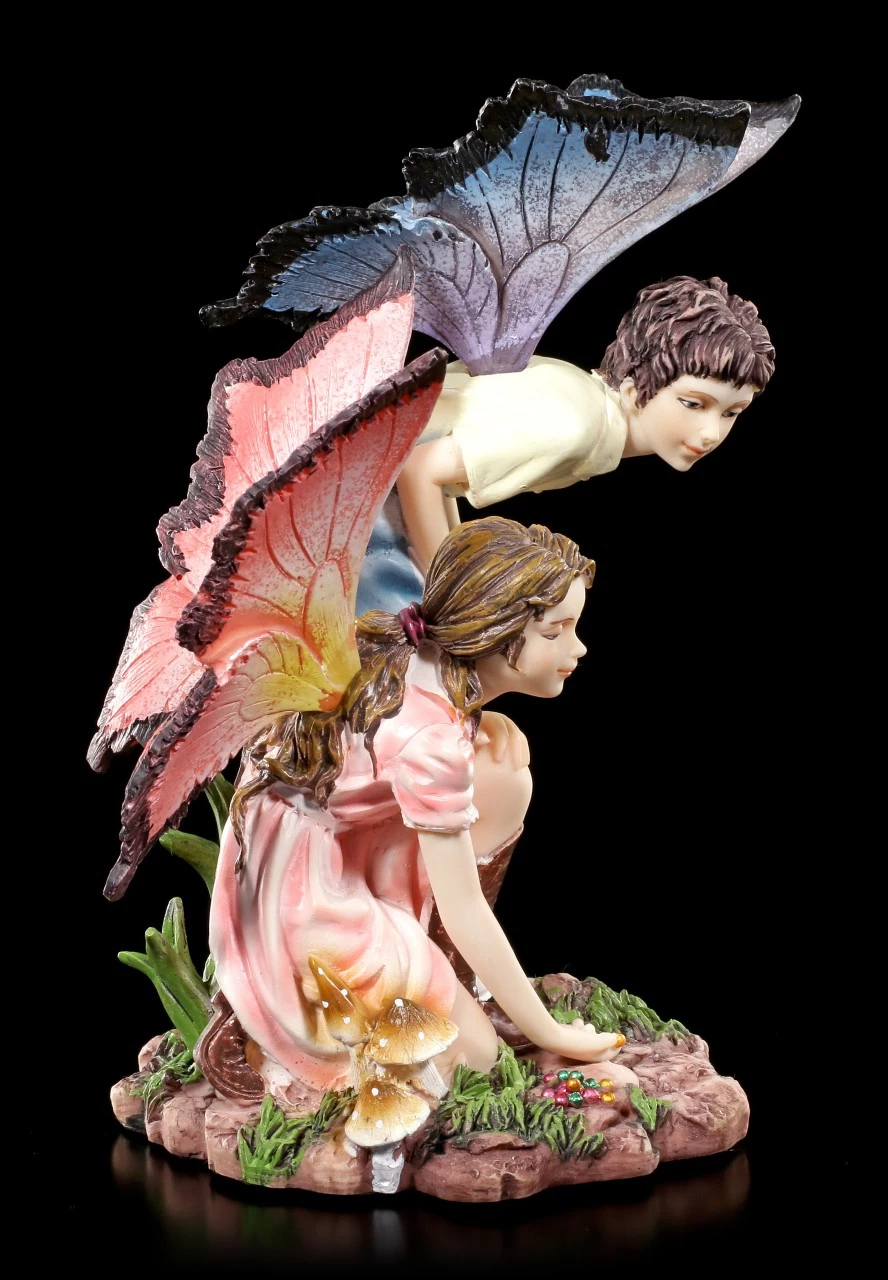 Zwei spielende Elfen Kinde als Deko Figur