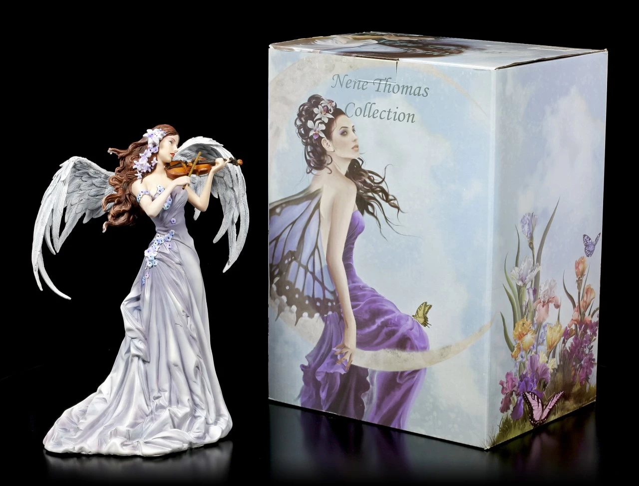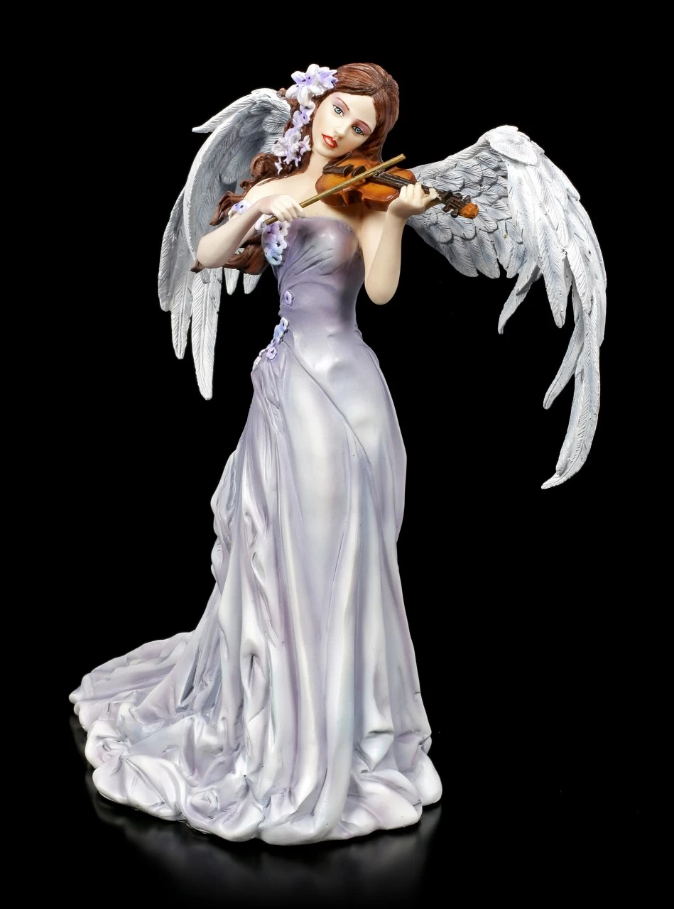 Nachts wenn die Menschen schlafen spielt der anmutige Engel auf ihrer Violine. Sie spielt für sie ein ruhiges Schlaflied. Das graue Ballkleid schmiegt sich anmutig an ihren schlanken Körper und passt perfekt zu ihren grauen Engelsflügeln. Die anmutige Engelstatue stammt aus der Feder von der Künstlerin Nene Thomas und kommt in einer schönen Geschenkbox.