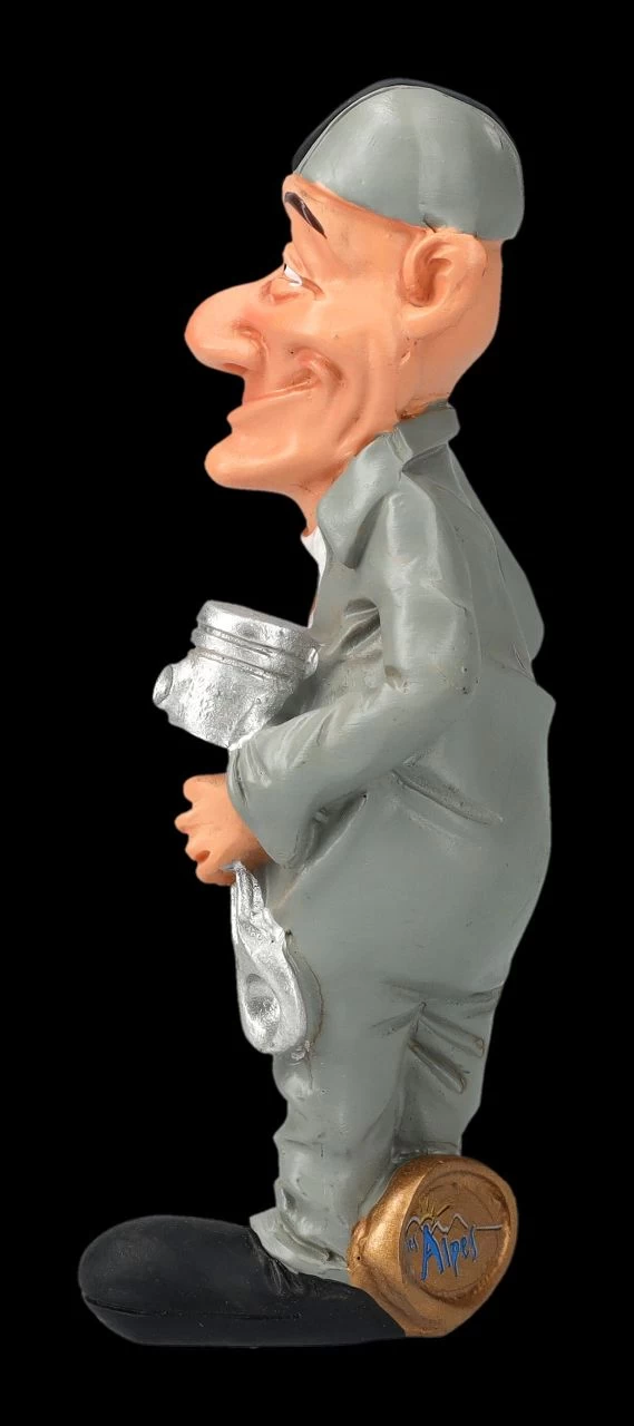 Auf zur Werkstatt Ihres Vertrauens. Der Mechaniker hat auf jeden Fall schon mal das passende Ersatzteil in der Hand. Die witzige kleine Funny Job Figur eines Mechanikers wurde aus handbemaltem Kunststein (Polyresin) gefertigt und ist 9,5 cm hoch, 3,5 cm breit und 2,5 cm tief. Sie sind mit Ihrer Werkstatt zufrieden? Dann ist der Mechaniker als lustige Deko das perfekte Geschenk.