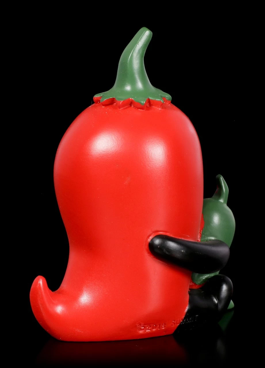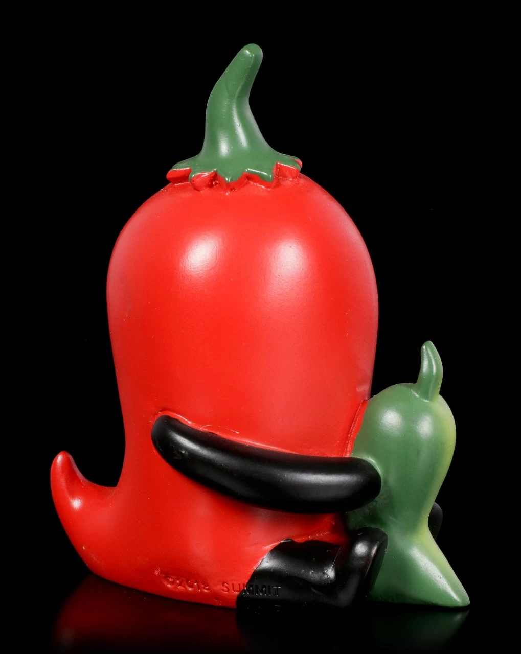 Scharf, schärfer, Chilito! Der kleine Furrybone hat sich heute mal so richtig in eine rote Schale geworfen. Chilito trägt sein Chili Kostüm und seine grüne Kuschelchili hat er gleich mitgenommen. Die süße handbemalte Kunststein (Polyresin) Figur aus der Summit Collection ist für alle die gerne scharf essen ein Must Have.