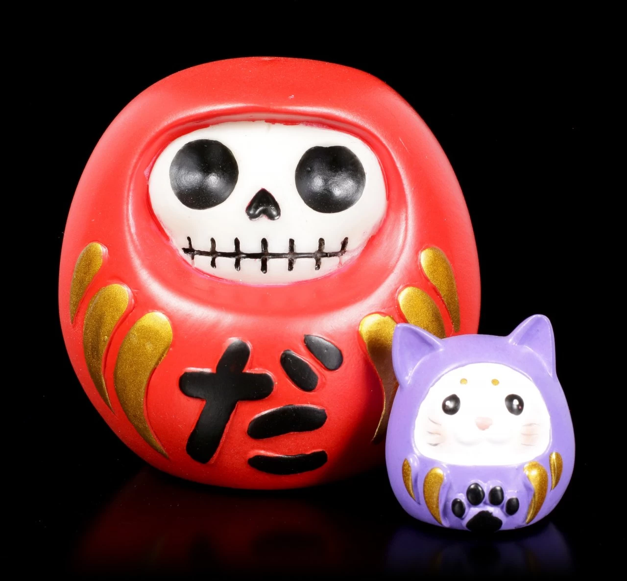 Daruma zählen zu den beliebtesten Glücksbringern in Japan. Sie stehen zudem für die Kraft und den Mut, auch in schwierigen Situationen wieder aufzustehen. Der kleine Furrybone hat sich als Daruma verkleidet und als Spielgefährte hat er seine Glückskatze dabei. Die handbemalte Figur aus Kunststein (Polyresin) ist ein wunderbarer Glücksbringer und ein niedliches Geschenk für einen lieben Menschen.