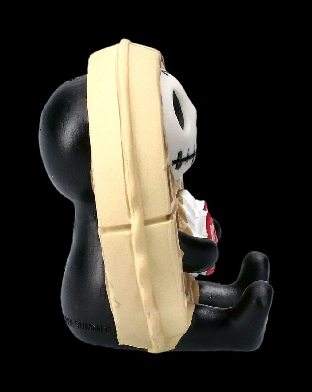 Wir lieben Waffeln und der kleine Furrybone Waffle Puffle liebt sie ganz offensichtlich auch. Vor allem auch mit Erdbeeren und Sahne – hmmm, lecker! Genießerisch grinst der kleine Waffle Puffle aus der runden Waffel hervor, durch die er sich schon mal durchgebissen hat. Die lustige Furrybones Figur Waffle Puffle aus detailreich und liebevoll handbemaltem Kunststein (Polyresin) ist 6,5 cm hoch, 7cm breit und 4,5 cm tief. Waffle Puffle ist ein tolles Geschenk für alle Furrrybones Sammler, vor allem, wenn sie auch noch Süßes lieben. Die Furrybones Figur kommt dazu in einem Geschenkkarton.
