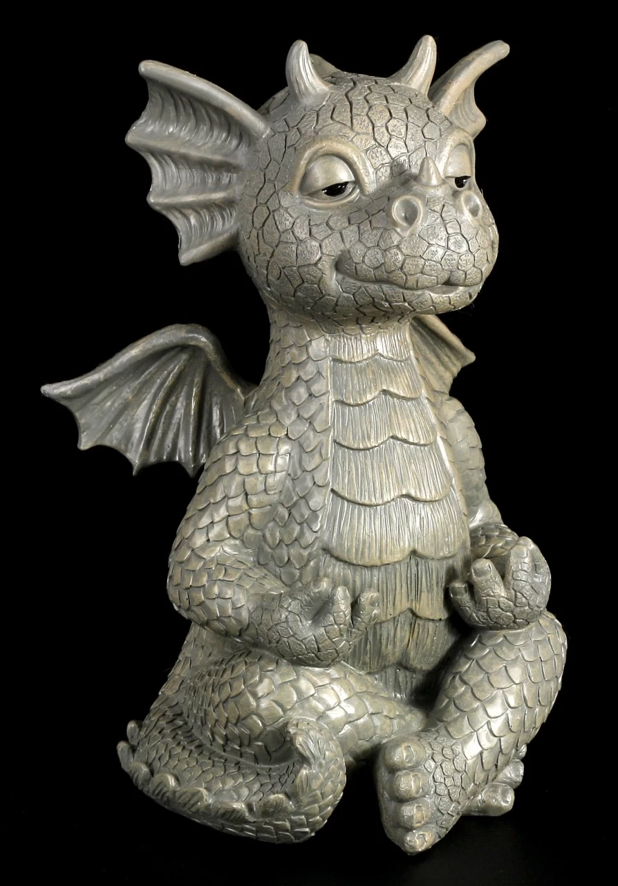 Entspannt und konzentriert macht der kleine Drache Yoga. Dieser Drache sieht dabei so entspannt aus, dass er eine Ruhe in den Garten bringt. Diese niedliche Gartenfigur ist aus handbemaltem Kunststein (Polyresin) und fühlt sich auch in einem Yogastudio garantiert wohl.