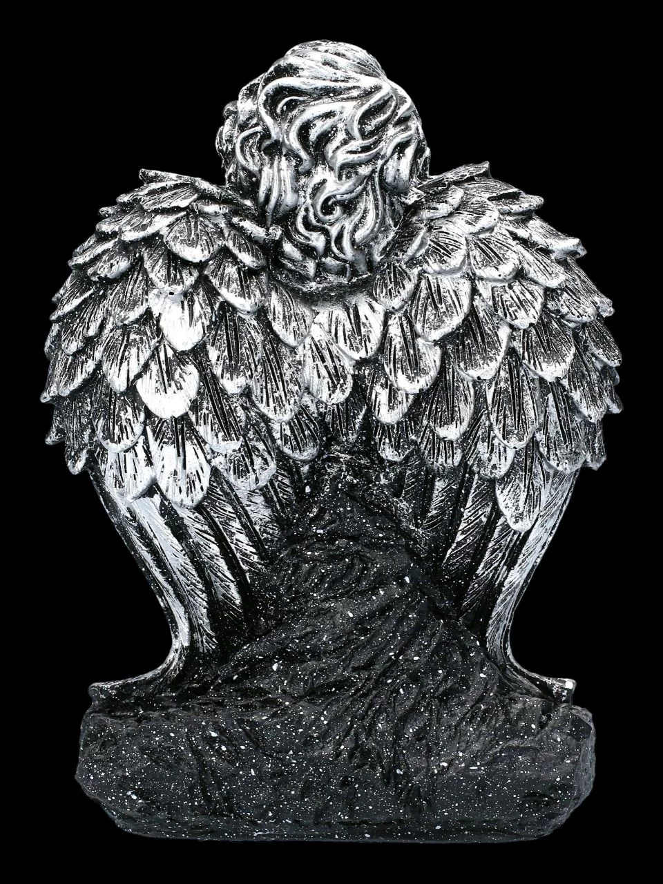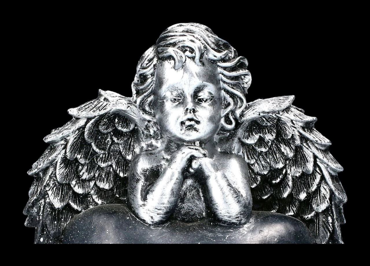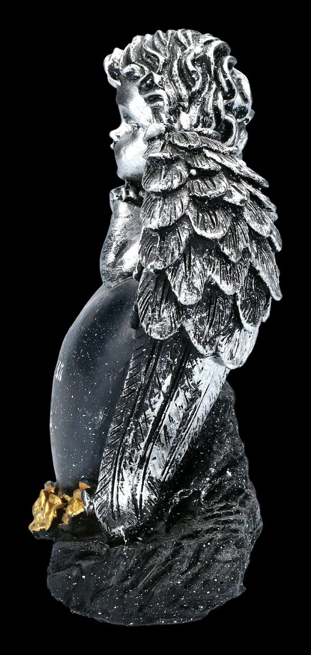 ‚Wir vermissen Dich‘, so lautet die Inschrift auf dem wie aus einem schwarzen Granit gearbeiteten Herz, hinter dem nachdenklich der süße, barocke Engel steht. Die fünf goldarbenen Rosen am Fuß des Herzens gibt diesem Grabengel ein edles Aussehen. Der Grabengel ist sehr detailreich aus liebevoll handbemaltem Kunststein (Polyresin) gefertigt. Er ist 17 cm hoch, 13 cm breit und 6,5 cm tief und sehr detailreich gestaltet.