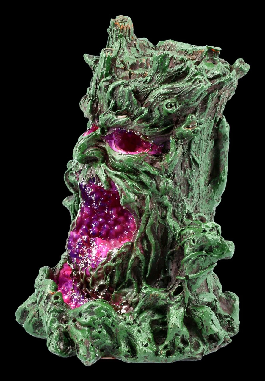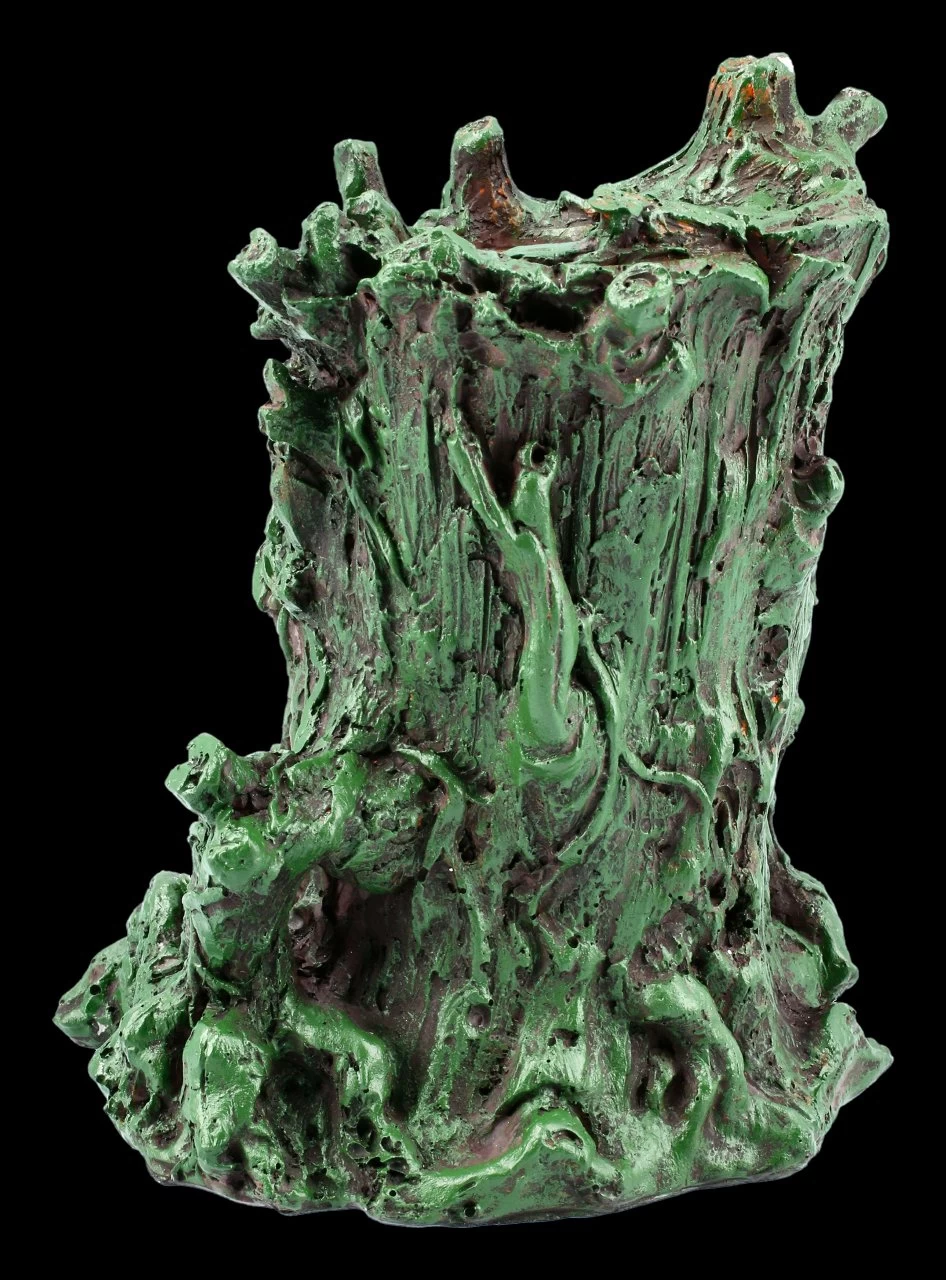 Der mystische Greenman hat seine Rinde geöffnet und gibt den Blick auf glitzernde Kristalle frei. Der Betrachter kann dabei zusehen, wie sich der Rauch an dem Kristall herunter schlängelt. Der umwerfende Baumgeist Backflow Räucherkegel Halter Crystal Ent ist ein tolles Geschenk für einen Sammler. Der handbemalte Baum aus Kunststein (Polyresin) ist mit und ohne Räucherkegel ein Hingucker.