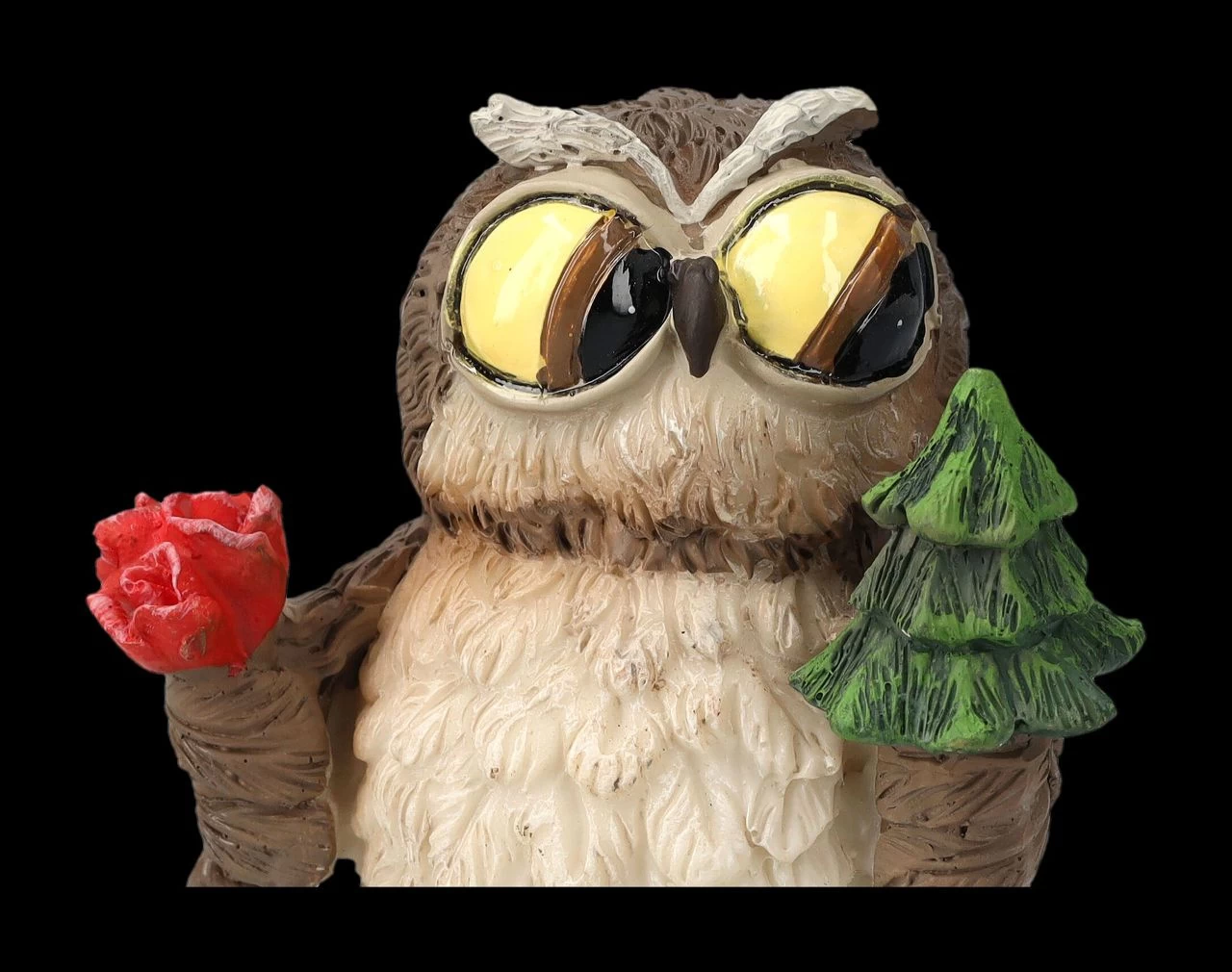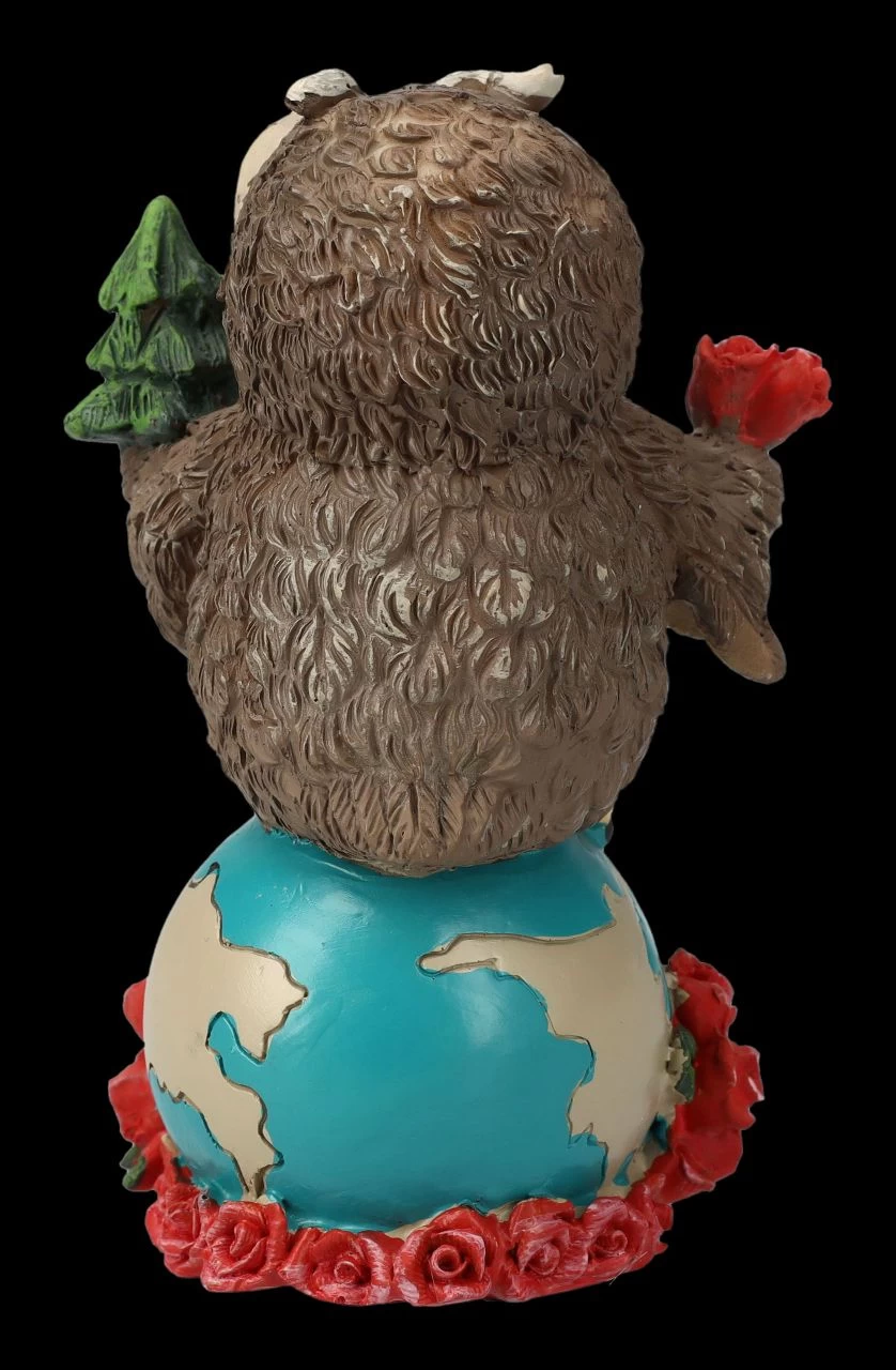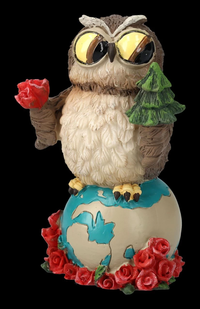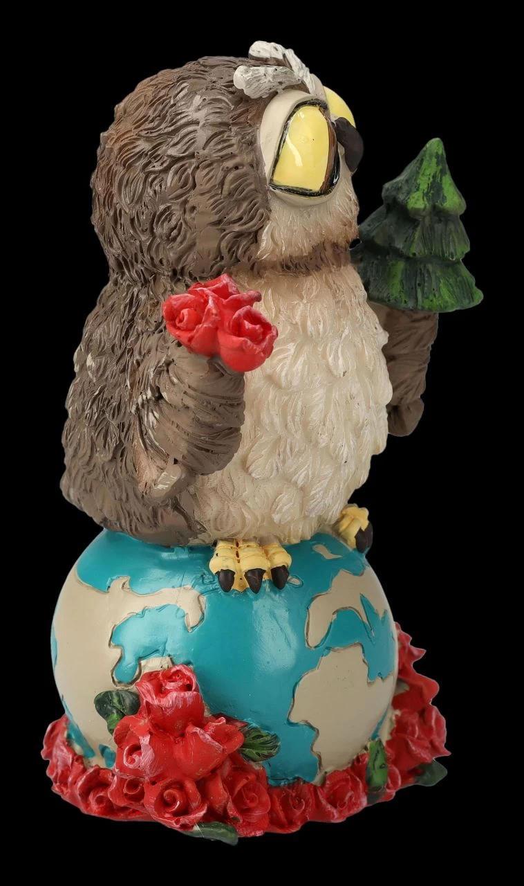 Die Erde liegt in einem Bett aus Rosenblüten und darauf steht hoch aufgerichtet eine Eule mit einer Rosenblüte in der einen und einem Tannenbaum in der anderen Hand. Eulen gelten ja als sehr weise und vielleicht sollte uns diese lustige Eulen-Figur, die das Element Erde darstellt, einfach nur zeigen, wie wichtig es ist, die schönen Dinge der Natur zu schützen. Die 11 cm hohe, 7 cm breite und 5,5 cm tiefe Eulen-Figur aus handbemaltem Kunststein (Polyresin) ist für alle Eulen-Sammler, die vielleicht auch das Element Erde in ihrem Horoskop haben, ein tolles Geschenk.