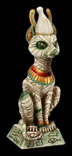 Eine ungewöhnliche und extravagante Darstellung des ägyptischen Totengottes Osiris ist diese Figur des berühmten amerikanischen Fantasykünstler Stanley Morrison. Dass er vor allem auch für seine einfallsreichen Drachenfiguren bekannt ist, sieht man dieser einzigartigen, in Bandagen gewickelten Figur des ägyptischen Gottes Osiris an, der – bevor er von seinem Bruder Seth getötet wurde – einer der ägyptischen Könige war. Diese ungewöhnliche, auf einem mit Schriftzeichen bedeckten Podest stehende Osiris Figur ist außerordentlich detailreich aus Kunststein (Polyresin) gefertigt und einfallsreich handbemalt. Die fantastische Osiris Figur aus der Serie Summit Collection ist 20 cm hoch, 7,5 cm breit und 8 cm tief und eine ausgefallene Deko, die sicher alle Blicke auf sich ziehen wird. Für weitere tolle Figuren des Künstlers Stanley Morrison blättern Sie einfach in unserem Shop.