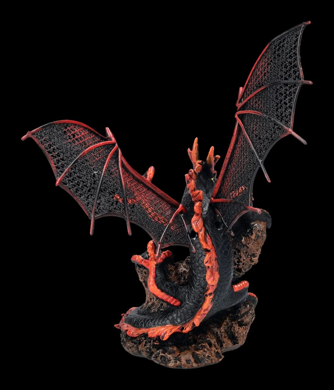 Die magische Kugel des großen Zauberers wird hoch oben auf einem Felsen aufbewahrt und von einem schwarz-roten Pterosaur Drachen bewacht. Pterosaurier waren die ersten flugfähigen Wirbeltiere.und wurden durch die ersten Funde als Drachen gesehen. Bereits in frühen Zeichnungen und Bildern wurden sie mit fledermausartigen Flügeln und einem schlangenartigen Schwanz dargestellt. Die Figur mit dem schwarz-rote Pterosaur Drachen auf dem Felsen ist 16,5 cm hoch, 13,5 cm breit und 13 cm tief. Sie wurde sehr detailreich aus handbemaltem Kunststein (Polyresin) und Metall gefertigt. Die fantastischen Flügel sind zum Stecken. Wer die magische Welt der Drachen liebt, wird sich über diese fantasievolle Drachen-Figur ein Geschenk sicherlich sehr freuen.