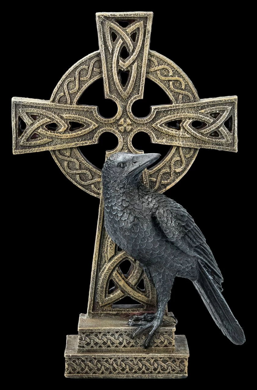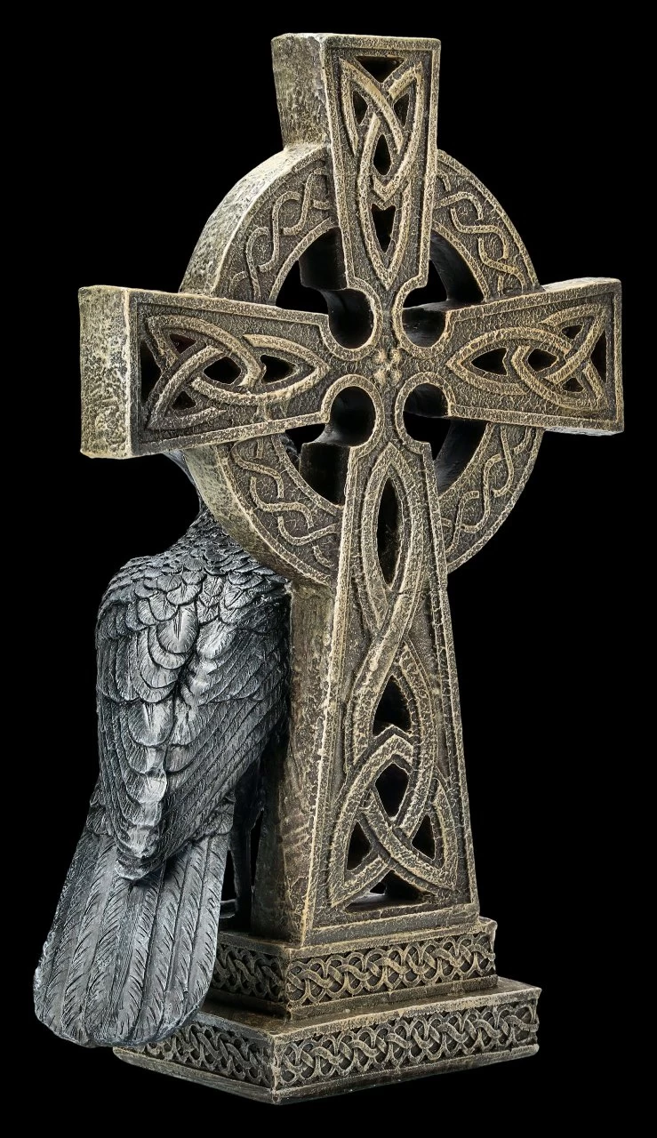 Rabe Sitzt Neben Keltischem Kreuz – Rechts