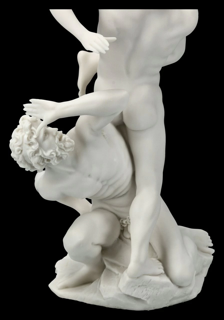 Diese Kunststein Figur in rein weiß ist eine Abbildung Giambolognas (voller Name Giovanni da Bologna) Raub der Sabinerinnen. Die Figur fesselt den Blick des Betrachters duch das Spiel von Licht und Schatten. Wer keine Zeit hat sich das Original in Florenz anzusehen, findet in dieser Figur das perfekte Pendant.