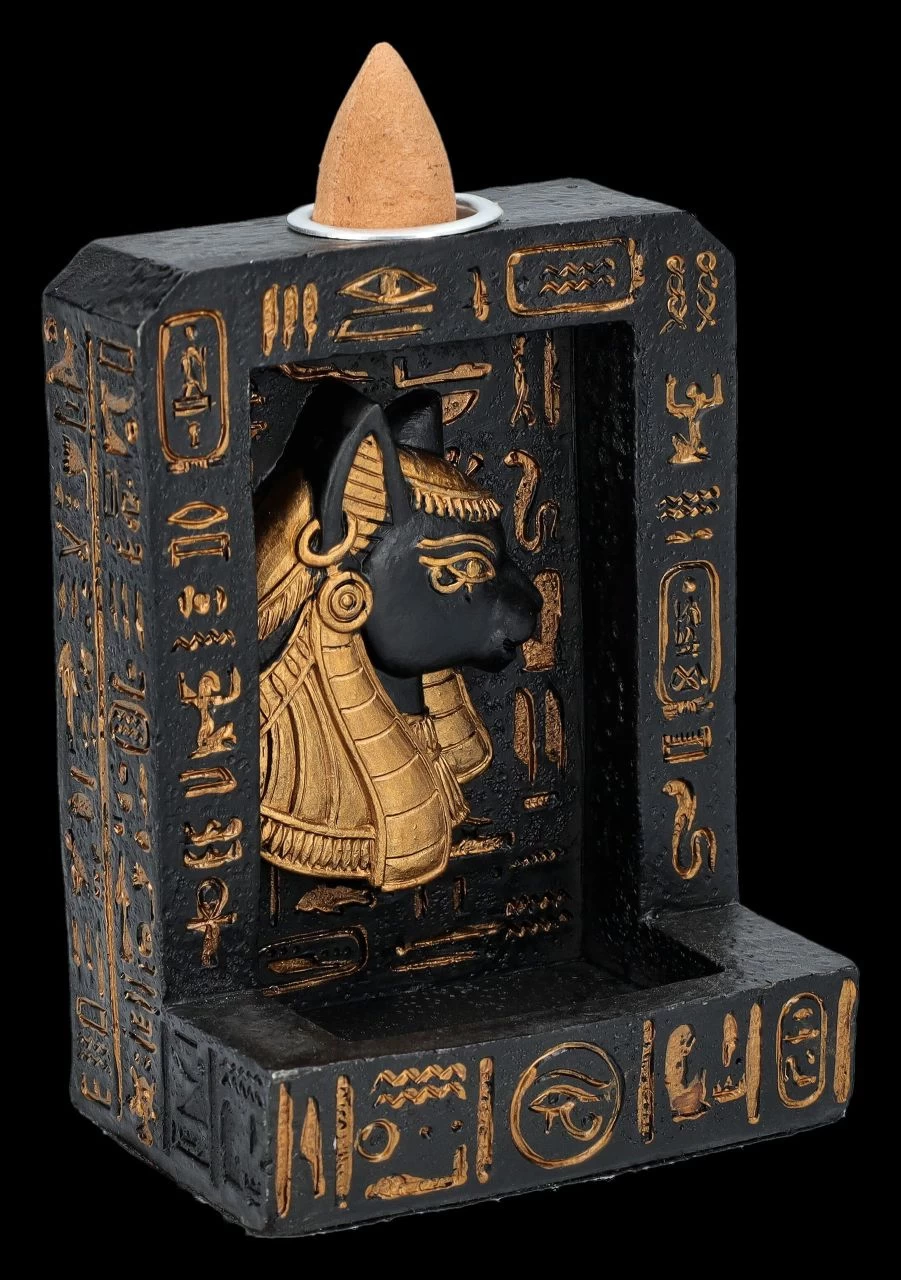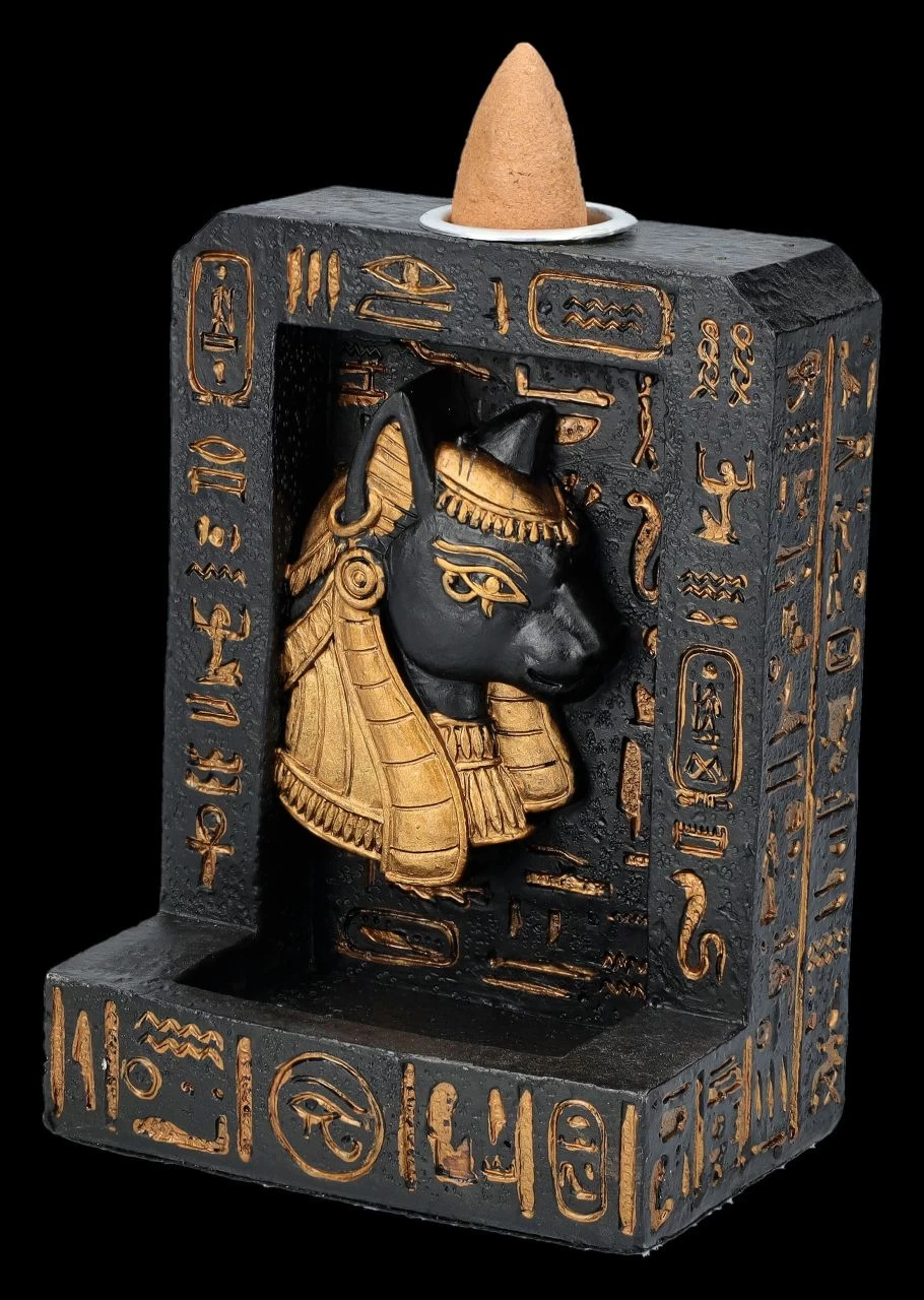 Ägyptische Mystik: Rückfluss-Räucherhalter mit Bastet-Relief