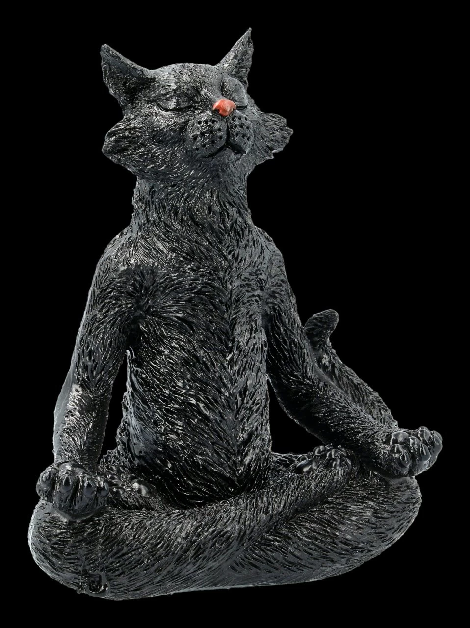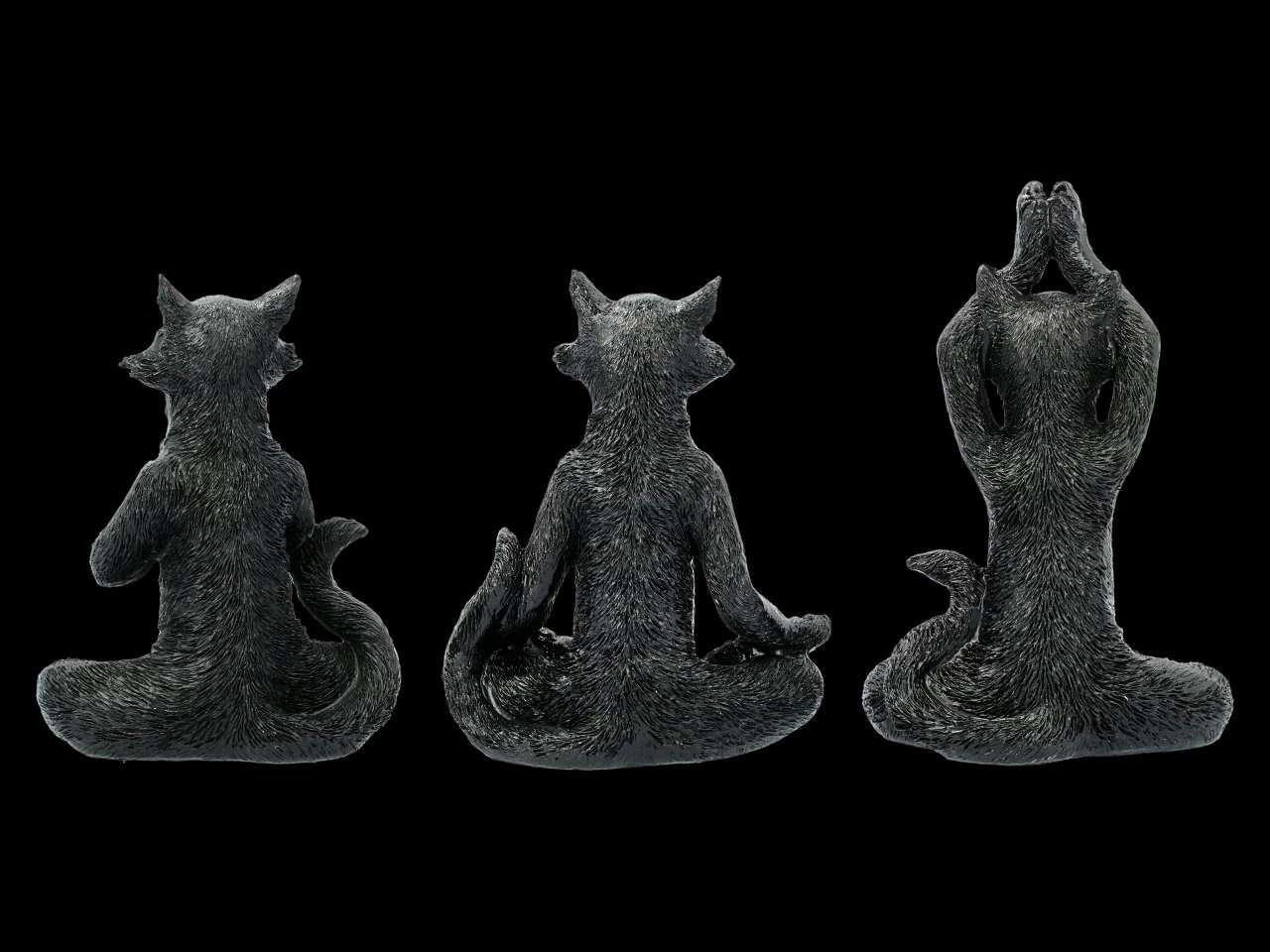 Voll konzentriert, so dass ihre Nasenspitzen schon richtig rot sind, machen diese drei witzigen schwarzen Katzen ihre morgendlichen Yogaübungen. Die drei aus handbemaltem Kunststein (Polyresin) gefertigten schwarzen Katzen sind mit ihrer Höhe von 19 – 22 cm, der Breite von 13,5 – 14,5 cm und der Tiefe von 8,5 – 10 cm die perfekte Deko für jedes Yogastudio. Das 3er Set ist aber natürlich auch ein sehr nettes Geschenk für Ihre Yogafreunde.