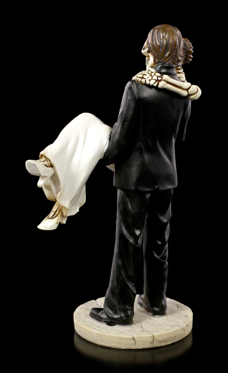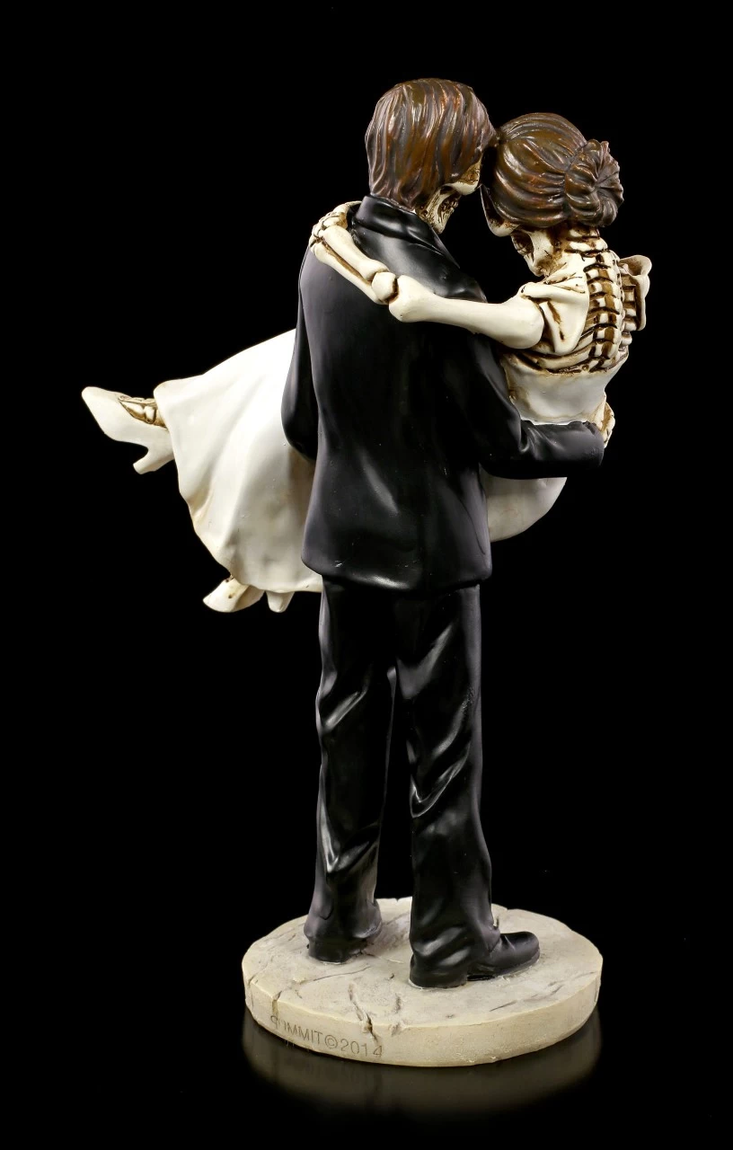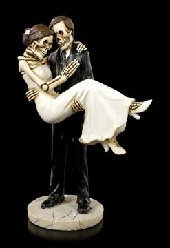Der Bräutigam trägt die Braut auf Händen. Das Skelett Brautpaar ist entweder das perfekte Geschenk zu einer Hochzeit oder eine wunderbare Tischdeko für die Tafel, an der nach der Trauung gefeiert wird. Das handbemalte Hochzeitspaar aus Kunststein (Polyresin) wird Sie mit all den vielen Details begeistern.