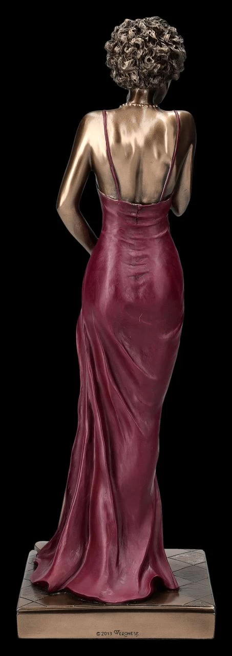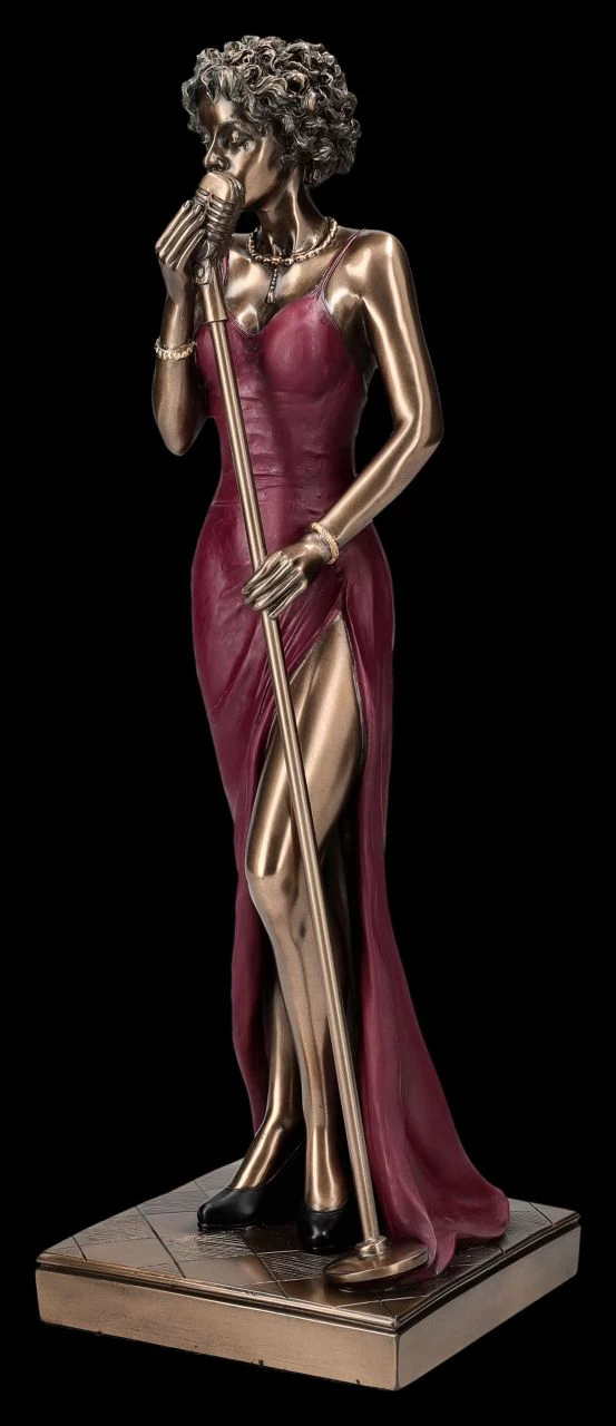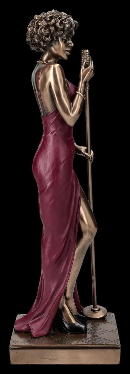 Beinahe kann man die Stimme einer der berühmten Jazz Sängerinnen, wie Ella Fitzgerald, Betty Carter, Carmen Mc Rae oder einer ihrer nicht minder berühmten Jazz-Schwestern hören, wenn man diese leidenschaftliche Sängerin von Veronese an ihrem Mikro betrachtet. Diese wunderbar elegante Jazz Band Figur aus der Studio Collection in ihrem sexy roten Kleid und den hochhackigen schwarzen Schuhen ist einfach perfekt dargestellt. Mit geschlossenen Augen lauscht sie den Tönen der Musik und gibt mit ihrer Stimme den Rhythmus vor. Die edel bronzierte, 30 cm hohe, 9,5 cm breite und 9,5 cm tiefe Jazz Band Figur der Sängerin wurde aus hochwertigem Kunststein (Polyresin) gefertigt und sorgsam mit viel Liebe zum Detail coloriert. Für begeisterte Fans berühmter Jazz Sängerinnen, aber auch für alle anderen Jazz Musiker ist diese wunderbare Sängerin das perfekte Geschenk. Mit den anderen Jazz Band Figuren aus unserem Shop, wie dem Saxophonisten und/oder dem Schlagzeuger, sind die Jazz-Band-Figuren von Veronese eine wunderbare Reminiszenz an die Großen des Jazz.
