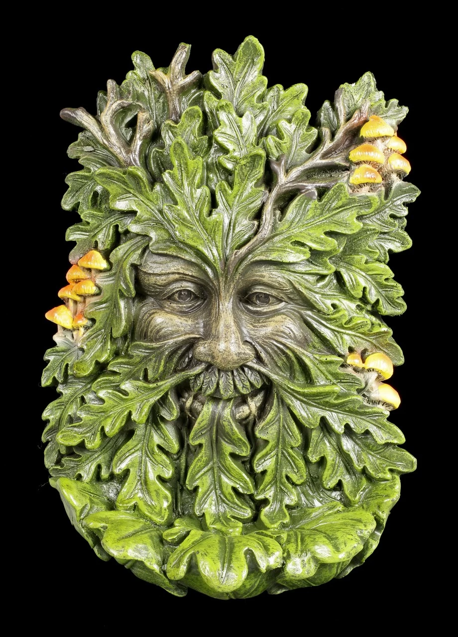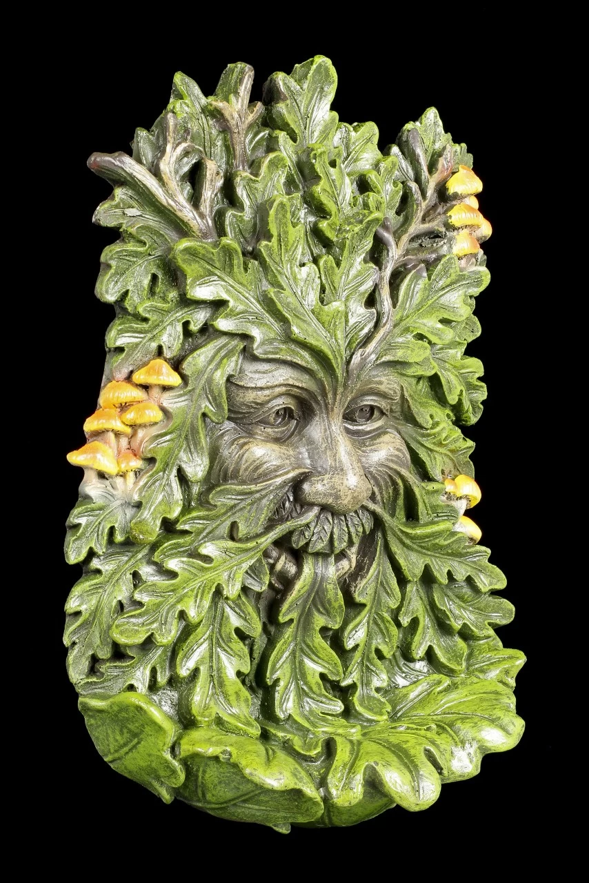Frech grinst der Waldgeist jeden an, der das Zimmer betritt. Er ist der Hüter der Wälder und immer zu Späßen aufgelegt. Das Wandrelief bringt Magie und Natur in Ihre Wohnung. Die Wanddeko wurde aus hochwertigem Kunststein (Polyresin) angefertigt und handbemalt.