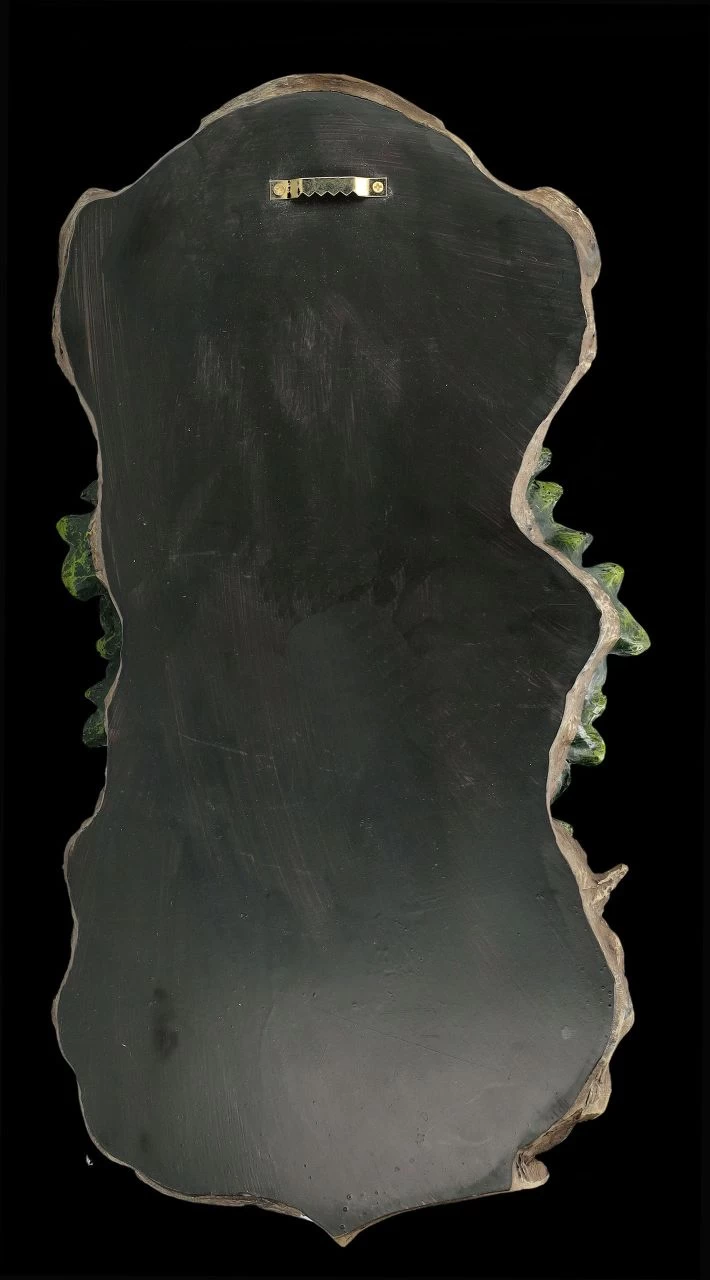 Der Greenman Yashem zeigt auf diesem Wandrelief, dass er keltischen Ursprungs ist, denn er trägt eine aus dem keltischen Knoten gebildete Krone, die sich auch im Kragen widerspiegelt. Das spirituelle Wandrelief mit dem faszinierenden Kopf des auch als Vegetationsgott verehrten Greenman ist 42 cm hoch, 21 cm breit und 6 cm tief. Es ist detailreich aus Kunststein (Polyresin) gefertigt und sorgsam von Hand bemalt und wirkt, als wäre der Kopf aus altem Holz geschnitzt. Das Wandrelief mit dem Greenman Yashem ist eine fantastische Dekoration für den ‚grünen Teil‘ des Wohn- oder Arbeitsbereiches und damit auch ein perfektes Geschenk.