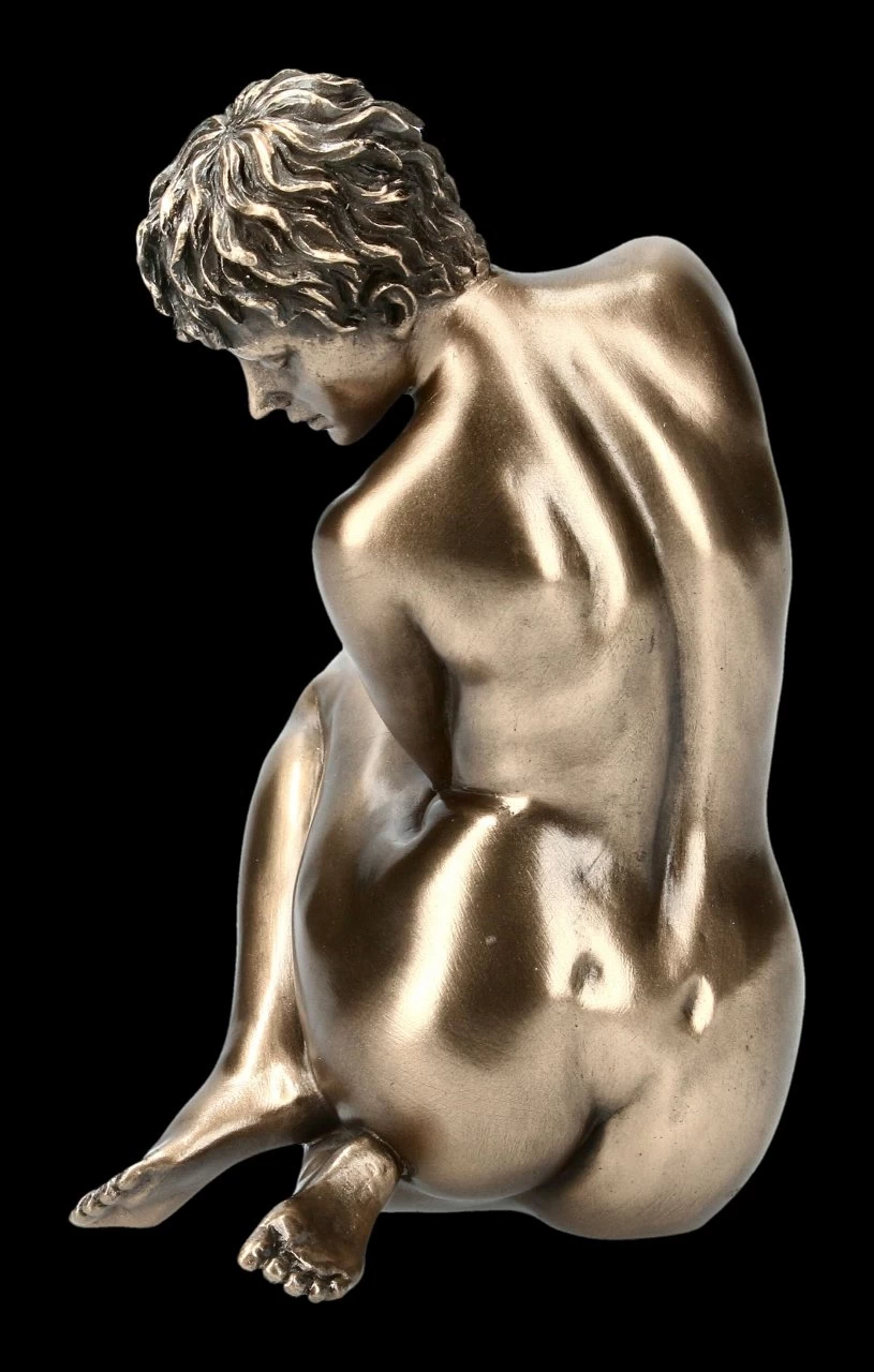 Der ästhetisch schöne Frauenakt von Veronese ist aus edel bronziertem Kunststein (Polyresin) gefertigt. Der Kontrast zwischen der Kurzhaarfrisur von Melly und den schön herausgearbeiten weiblichen Formen geben dieser Aktfigur in schöner Bronze-Optik den besonderen Reiz. Mit einer Höhe von 12,5 cm, einer Breite von 8 cm und der Tiefe von 7,5 cm ist diese schöne Aktfigur ein sofortiger Blickfang auf jedem Schreibtisch, der Fensterbank oder im Regal.