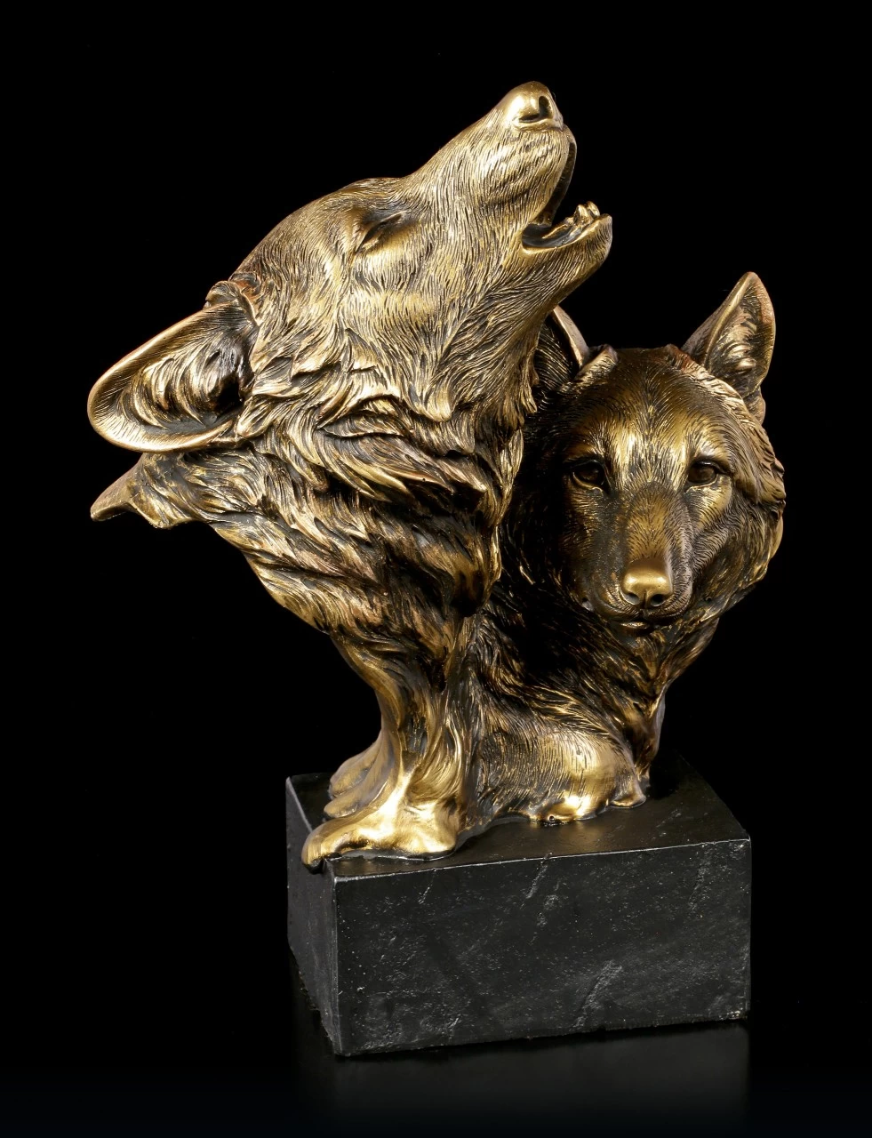 Wolf Fans aufgepasst! Die handbemalten Wolfs Büsten auf schwarzem Monolith sind der Hingucker im Regal. Die lebensecht wirkenden Wölfe „Song of the Wild“ aus Kunststein (Polyresin) bestechen durch die vielen Details und die realistisch wirkende Ausführung.