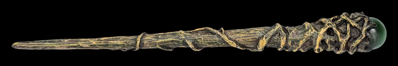 In magischen Nächten kann der Greenman mit diesem Zauberstab die Seelen des Waldes zum Leben erwecken. Bist Du der Greenman, der dies versuchen möchte? Dann ist dieser wie aus einem uralten Holz wirkende Zauberstab genau der Richtige. Der 24 cm lange, 3 cm breite und 3 cm tiefe Zauberstab aus Kunststein (Polyresin) ist in täuschend echter Holzoptik von Hand bemalt. Wer den richtigen Zauberspruch gefunden hat, wird vielleicht sehen, dass die grüne Kugel an der Spitze leuchtet. Also heißt es fleißig üben. Magier wissen, dass sie für jeden Zauber einen eigenen Zauberstab benötigen. Für die Sammlung gibt es eine große Auswahl in unserem Shop.